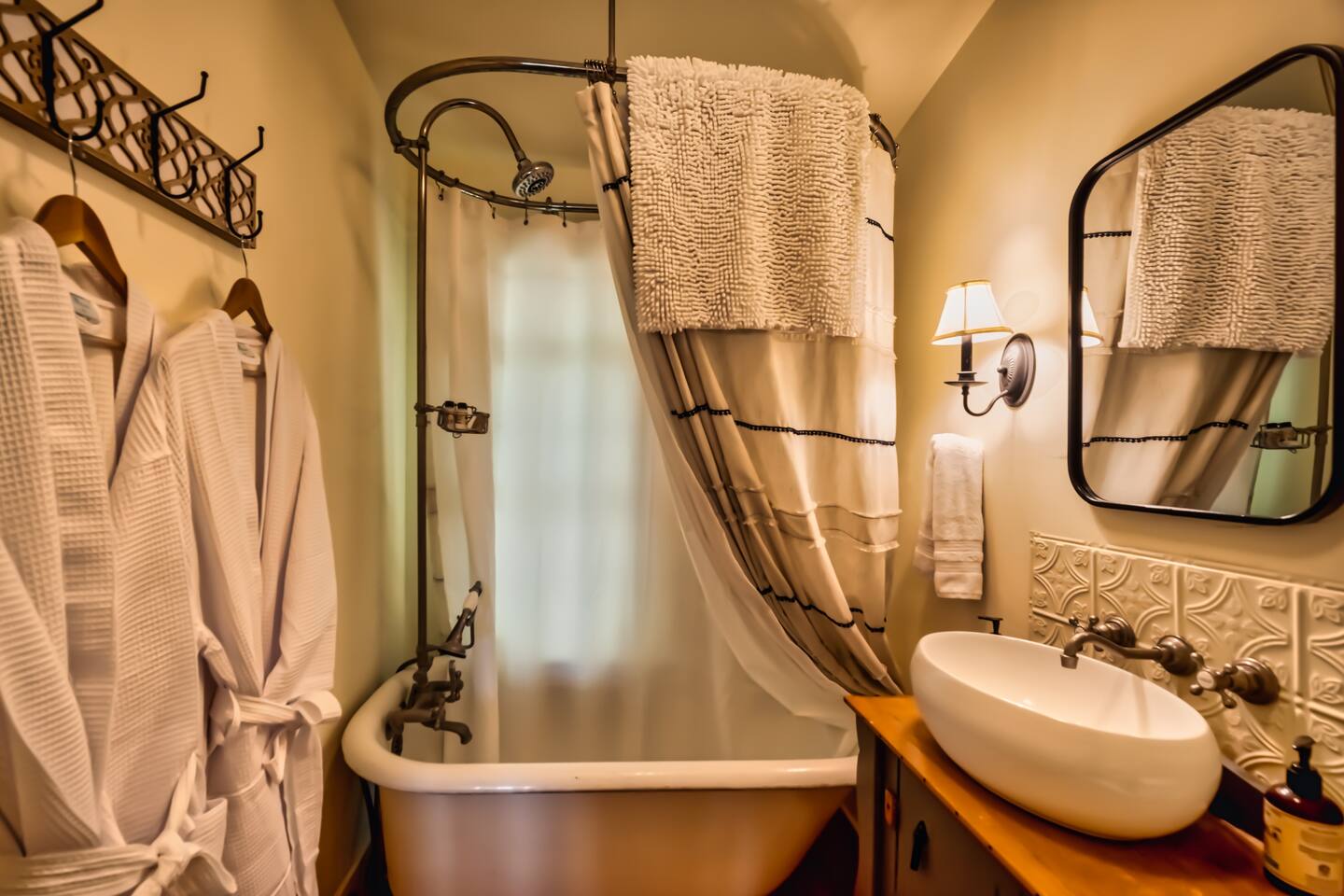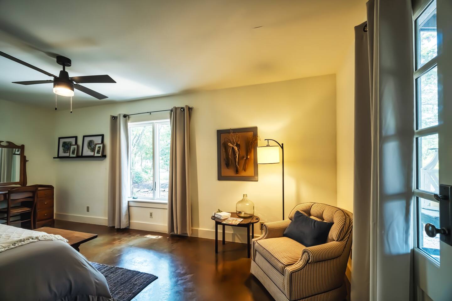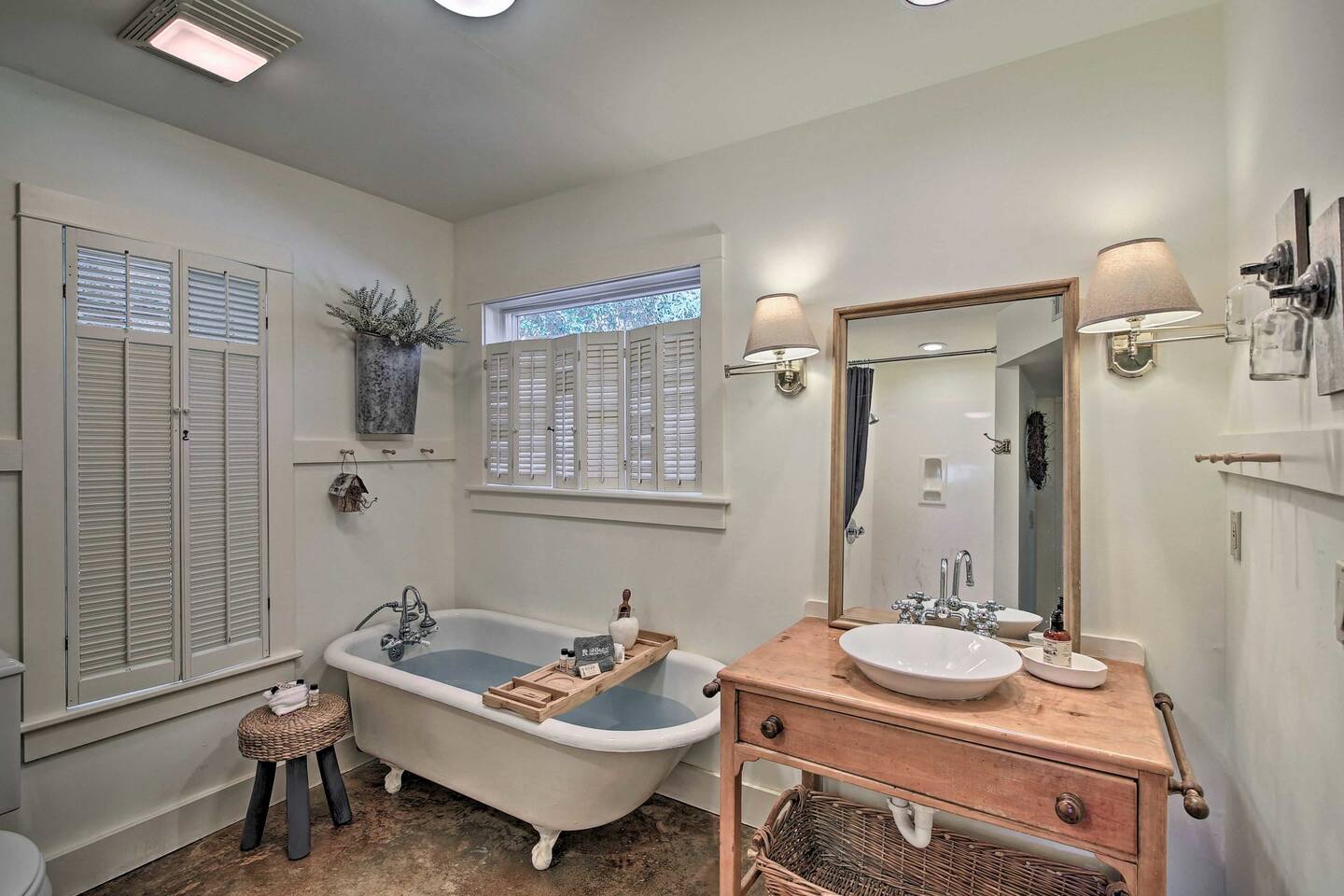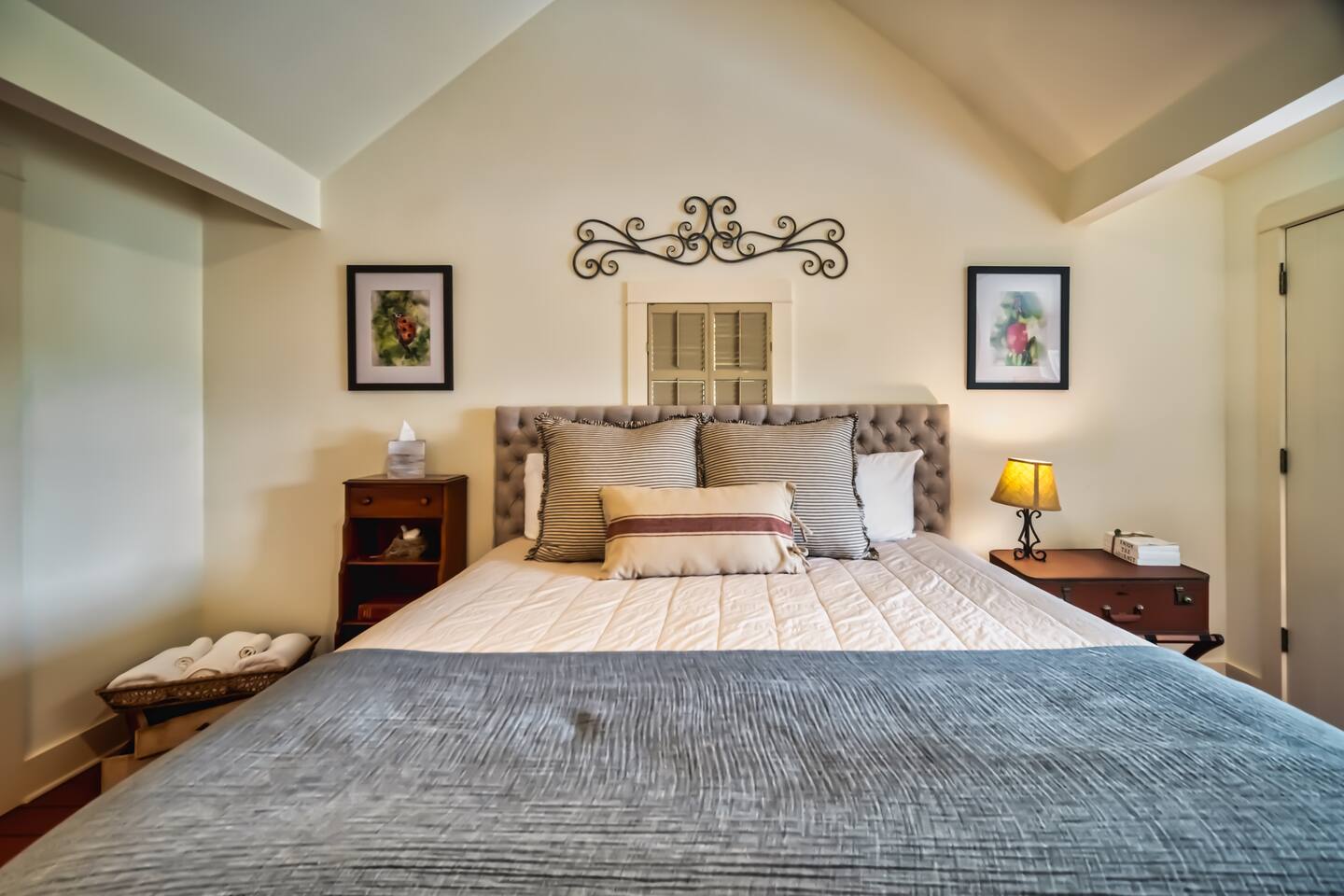 Be our guest & unwind in style at our charming retreat, where cottage-chic charm & modern comforts collide! Nestled in the historic district, downtown delights are just a hop, skip, & a jump away. Each guest gets their own king suite, while the outdoor fire pit and screened porch are prime spots for gathering & chilling with friends. When you're ready to kick things up a notch, the nearby wineries, breweries, & distilleries await – because relaxation with a side of adventure is our specialty.